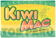 El logotipo conformado por la denominación KIWI MAC escrita en letras características de doble borde, en la parte inferior derecha se aprecia la frase EL NÉCTAR DEL PERÚ! escrita en letras características, en la parte central derecha se aprecia la figura estilizada del mapa del Perú en el cual se aprecian figuras irregulares, en la parte superior e inferior se aprecian dos franjas que contienen figuras irregulares, todo en la combinación de colores negro, amarillo, blanco, verde en distintas tonalidades y anaranjado en distintas tonalidades; conforme al modelo adjunto.