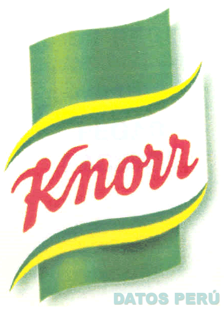 LA DENOMINACIÓN KNORR ESCRITA EN LETRAS CARACTERÍSTICAS DENTRO DE UNA FRANJA ONDULANTE EN POSICIÓN HORIZONTAL, SOBRE UNA FRANJA ONDULANTE EN POSICIÓN VERTICAL, TODO EN LOS COLORES ROJO, VERDE Y AMARILLO; CONFORME AL MODELO ADJUNTO
