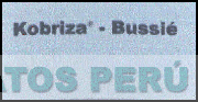 La etiqueta conteniendo la denominación KOBRIZA-BUSSIÉ escrita en letras características de color negro, sobre un fondo en color celeste; conforme al modelo adjunto
