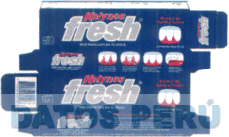 EL EMPAQUE RECTANGULAR CONTENIENDO LA DENOMINACION KOLYNOS FRESH, EN LETRAS CARACTERISTICAS, Y EL LADO DEREHO, UNA FIGURA RECTANGULAR EN LA QUE APARECE EL DISEÑO DE TRES DIENTES, TODO EN LOS COLORES AZUL, ROJO, PLOMO, BLANCO, CELESTE Y AMARILLO, CONFORME AL FACSIMIL ADJUNTO,