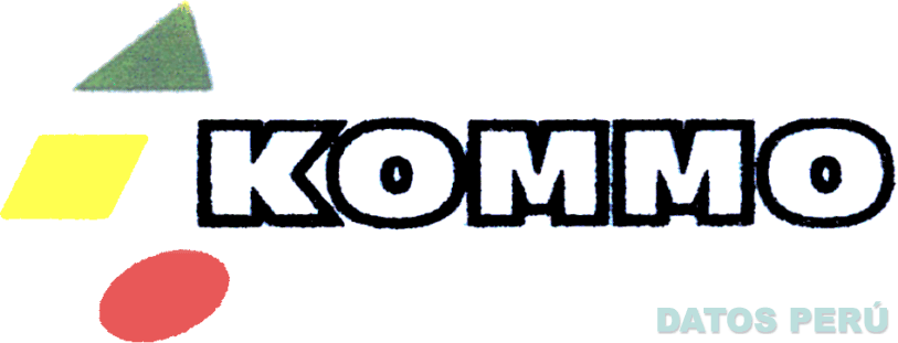 El logotipo conformado por la denominación KOMMO escrita en letras características antecedida por un triángulo, un trapecio y un círculo en los colores negro, verde, amarillo, rojo y blanco; conforme al modelo adjunto