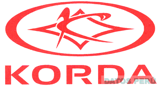La denominación KORDA escrita en letras características y en la parte superior una figura ovoide conteniendo un diseño característico de un rombo y la letra K estilizada, todo en color rojo; conforme al modelo adjunto