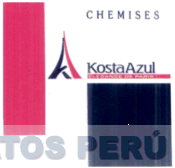 LA ETIQUETA CONFORMADA POR LA DENOMINACION KOSTA AZUL, ESCRITA EN LETRAS CARACTERISTICAS DE COLOR AZUL, DEBAJO DE LA CUAL APARECE UNA FRANJA DE COLOR ROJO Y A SU LADO IZQUIERDO SE APRECIA UNA FIGURA GEOMETRICA ESTILIZADA EN COLORES AZUL Y ROJO; EN LA PARTE SUPERIOR IZQUIERDA E INFERIOR DERECHA APARECEN UNAS FIGURAS RECTANGULARES DE COLORES ROJO Y AZUL RESPECTIVAMENTE, TODO SOBRE UN FONDO DE COLOR BLANCO, CONFORME AL MODELO DEL FACSIMIL ADJUNTO,