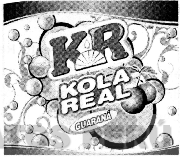 El logotipo conformado por la denominación KR KOLA REAL escrita en letras características, acompañada de un semicírculo con líneas, la figura estilizada de dos frutos de guaraná; la denominación GUARANÁ (sin reivindicar) escrita en letras características dentro de una figura ovalada y líneas ondeadas; todo superpuesto a un fondo con la representación de círculos que se asemejan a burbujas de distintos tamaños; conforme al modelo adjunto
