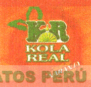 La denominación KOLA REAL con su logotipo formado por las letras KR de color verde, separadas por una gota sobre un semicírculo, que se asemeja a las rodajas de un cítrico en color verde y fondo amarillo; montado sobre la denominación KOLA REAL en letras blancas de borde verde y la palabra NARANJA en letras blancas de borde anaranjado; todo sobre un fondo anaranjado con aplicaciones verde en el que se distingue la figura de una naranja estilizada; dentro de dos franjas de color anaranjado una en la parte superior y la otra en la parte inferior; conforme al modelo adjunto