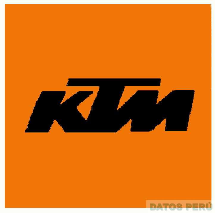 El logotipo conformado por las letras K, T y M escritas en forma característica dentro de una etiqueta cuadrangular; en colores anaranjado y negro; conforme al modelo adjunto