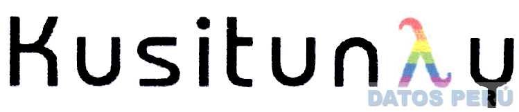 El logotipo conformado por la denominación KUSITUNAY escrita en letras características de color negro, excepto la letra A que presenta los colores rojo, anaranjado, amarillo, verde, azul y morado; conforme al modelo adjunto