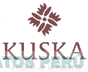 El logotipo conformado por la denominación KUSKA escrita en letras características y en la parte superior la representación estilizada de una flor y figuras irregulares, y en la parte inferior la frase LO NUEVO DE LO NUESTRO, todo en color marrón en distintas tonalidades; conforme al modelo adjunto