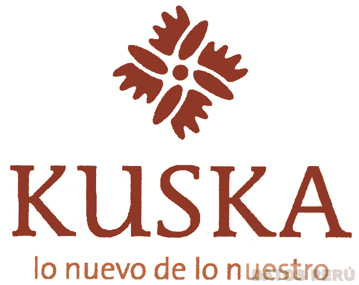 El logotipo conformado por la denominación KUSKA escrita en letras características y en la parte superior la representación estilizada de una flor y figuras irregulares, y en la parte inferior la frase LO NUEVO DE LO NUESTRO, todo en color marrón en distintas tonalidades; conforme al modelo adjunto