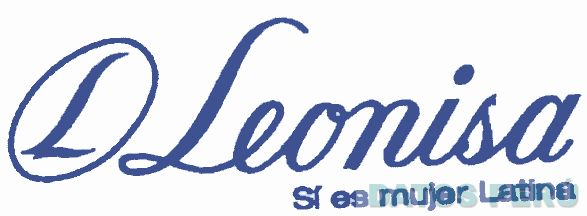 El logotipo conformado por la representación estilizada de la letra L dentro de una figura ovalada, al lado derecho la denominación LEONISA escrita en letras características, y en la parte inferior la frase SÍ ES MUJER LATINA escrita en letras características, en color azul; conforme al modelo adjunto