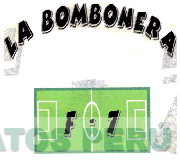 El logotipo conformado por la denominación LA BOMBONERA escrita en letras características, y la representación estilizada de una cancha de fútbol con la letra F y el número 7 escritas en letras características, en la combinación de colores negro, verde en dos tonalidades y blanco; conforme al modelo adjunto