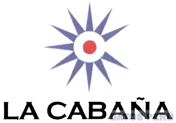 El logotipo conformado por la denominación LA CABAÑA escrita en letras características y en la parte superior un círculo en color rojo (ink pantone 180 cvu), rodeado de once rayos estilizados en color azul (ink pantone 877); conforme al modelo adjunto.
