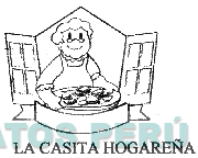 La figura estilizada de una ventana abierta de figuras irregulares donde se aprecia la figura estilizada de una anciana conteniendo una bandeja de pan, y la denominación CASITA HOGAREÑA escritas en letras características, todo en los colores blanco y negro; conforme al modelo adjunto