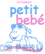 El logotipo conformado por la denominación LA COOPER PERTIT BEBÉ escrita en letras características en donde la palabra LA COOPER escrita en texto color magenta, estilo itálica, la letra L y la letra C en mayúsculas, el resto en minúsculas, la palabra PETIT tiene como tipo de letra la fuente Comic Sans MS, todas las letras en minúsculas y en color azul, la palabra BEBÉ tiene como tipo de letra la fuente Comic Sans Ms, todas las letras en minúsculas y en color Magenta, como isotipo esta la figura caricaturizada de un bebé gateando con lentes de sol en su cabeza y su mano izquierda extendida con el dedo pulgar en un signo de aprobación, los colores de las líneas del dibujo del bebé son azules y la lengua magenta, el bebé se encuentra encima de una línea estilizada color magenta; conforme al modelo adjunto