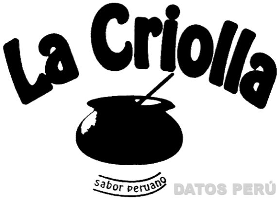 El logotipo de una olla de barro conteniendo un mango de un utensilio, en la parte superior la denominación LA CRIOLLA y en la parte inferior la denominación SABOR PERUANO escrita en letras características; conforme al modelo