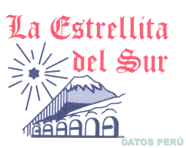 El logotipo conformado por la denominación LA ESTRELLITA DEL SUR escrita en letras características de color rojo y la representación estilizada de una estrella, un misti y seis portales de color azul; conforme al modelo adjunto