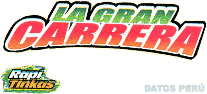 EL LOGOTIPO CONFORMADO POR LA DENOMINACIÓN LA GRAN CARRERA ESCRITA EN LETRAS CARACTERÍSTICAS, DONDE LAS PALABRAS LA GRAN SON EN TONALIDADES DE COLOR VERDE Y LA PALABRA CARRERA ES EN TONALIDADES DE COLOR ROJO, TODAS CON UN BORDE CON COLOR BLANCO QUE LES DA EL ASPECTO DE ALTO RELIEVE, Y CON UN BORDE DE COLOR NEGRO; Y EN LA PARTE INFERIOR LA DENOMINACIÓN RAPITINKAS ESCRITA EN LETRAS CARACTERÍSTICAS, DONDE RAPI ESTÁ EN LETRAS DE COLOR BLANCO CON BORDES EN COLOR NEGRO, Y TINKAS ESTÁ EN LETRAS DE COLOR AMARILLO CON BORDE EN COLOR NEGRO, TODO SOBREPUESTO A UN FONDO IRREGULAR DE COLOR VERDE; CONFORME AL MODELO ADJUNTO