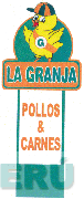 La denominación LA GRANJA POLLOS & CARNES y logotipo (se reivindica colores), conforme al modelo