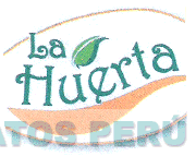 El logotipo conformado por la denominación LA HUERTA escrita en letras características, en la parte inferior la figura de una cuchara y en la parte superior una hoja, todo dentro de un óvalo en forma de huevo, en la combinación de los colores verde y anaranjado; conforme al modelo adjunto
