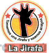 El logotipo conformado por la denominación TOMEMOS UNA JIRAFA Y SEAMOS AMIGOS escrita en letras características y la representación de una silueta de jirafa rodeada de círculos que contiene dos estrellas, en la parte inferior la denominación LA JIRAFA escrita en letras características dentro de una figura rectangular, todo en la combinación de colores, gris, amarillo, rojo y negro; conforme al modelo adjunto.