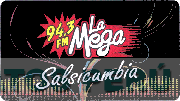 El logotipo rectangular de bordes redondeados que contiene la denominación LA MEGA 94.3 FM escrita en letras características y dentro de una figura irregular, debajo aparece la denominación SALSICUMBIA (sin reivindicar) escrita en letras características, como fondo aparecen una serie de figuras ovaladas y unas líneas irregulares, todo en la combinación de colores rojo, amarillo, blanco, negro, celeste, fucsia, beige, anaranjado y verde; conforme al modelo adjunto
