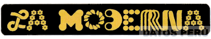 La denominación LA MODERNA escrita en letras característica de color amarillo sobre un fondo rectangular con bordes redondeados de color negro; conforme al modelo adjunto