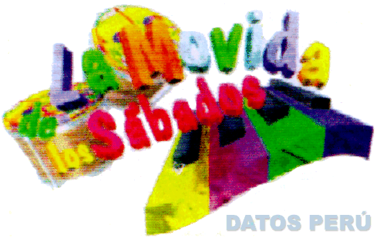 EL LOGOTIPO CONFORMADO POR LA DENOMINACION LA MOVIDA DE LOS SABADOS ESCRITA EN LETRAS CARACTERISTICAS EN COLORES LILA, VERDE, ANARANJADO, CYAN, AMARILLO Y FUCSIA, SOBRE UN FONDO BLANCO QUE CONTIENE EL DIBUJO ESTILIZADO DE DOS BONGOS Y PARTE DE UN TECLADO MUSICAL EN COLORES AMARILLO, MAGENTA, VERDE Y AZUL; CONFORME AL MODELO ADJUNTO,