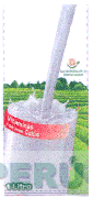 La etiqueta rectangular conformada por un paisaje de fondo en el cual se aprecia en la parte inferior un pastizal de color verde, cielo de color blanco y figura estilizada de un vaso siendo llenado de leche alrededor del cual se aprecia una franja de color rojo, al extremo medio derecho se aprecia un círculo de color anaranjado debajo figura semi-ovalada terminada en una hoja de color verde seguida de la denominación LA PROTEINA DE LA BUENA SALUD escrita en letras características (sin reivindicar) y demás frases alusivas al producto; conforme al modelo adjunto