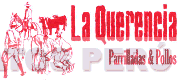 El logotipo conformado por la denominación LA QUERENCIA PARRILLADAS & POLLOS escrita en letras características, al lado izquierdo se observa la figura estilizada de un caballo y su jinete, tres reses y cuatro hombres con vestimenta típica gaucha; todo en color rojo; conforme al modelo adjunto.