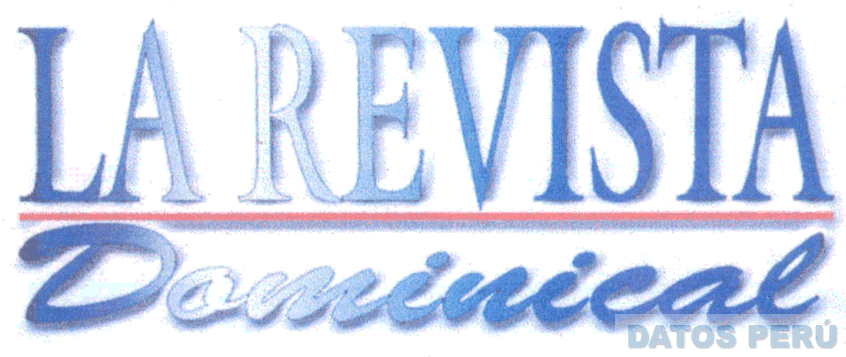 La denominación LA REVISTA DOMINICAL escrita en letras características, escritas en dos líneas de forma horizontal sobre fondo blanco, siendo las letras con tonalidades de color azul y celeste, una línea roja debajo de las palabras LA REVISTA; conforme al modelo adjunto