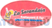 La figura ovalada color rojizo, en cuyo interior se aprecia la denominación LA SARANDAJA color plomo en forma ascendente con filo blanco, figura de un vaso con hielos y rodaja de naranja y sorbete, y la frase RESTAURANT & BAR en color blanco y un efecto abajo como de olas de mar en tonos azulinos; conforme al modelo adjunto