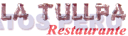 La denominación LA TULLPA RESTAURANTE escrita en letras características en los colores marrón y rojo; conforme al modelo adjunto