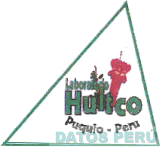 El logotipo conformado por la denominación LABORATORIO HUITCO PUQUIO-PERU escrita en letras características, como fondo se aprecia una flor de kantu, todo dentro de una figura triangular, en los colores verde, rojo y negro; conforme al modelo adjunto