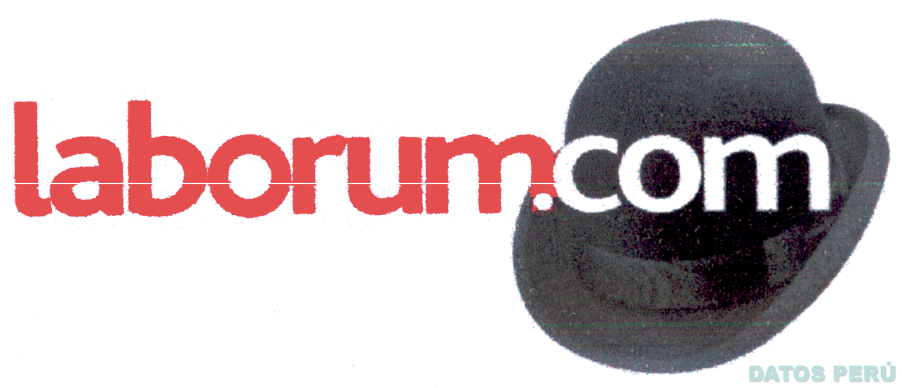 El logotipo conformado por la denominación LABORUM.COM y representación de un sombrero, todo en los colores blanco, negro y rojo; conforme al modelo adjunto