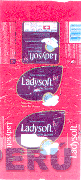 La envoltura rectangular con la denominación LADYSOFT escrita en letras características y la figura de una mariposa seguida de una línea ondulada y en la parte inferior la figura de una toalla higiénica y demás frases alusivas al producto, todo en colores rojo, violeta, dorado y blanco; conforme al modelo adjunto