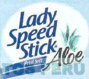 El logotipo conformado por la denominación LADY SPEED STICK PETAL SOFT ALOE escrita en letras características y la figura de un conjunto de hojas, dentro de una figura circular y ésta, a su vez, dentro de una figura cuadrangular, todo en los colores azul, celeste, verde y blanco; conforme al modelo adjunto