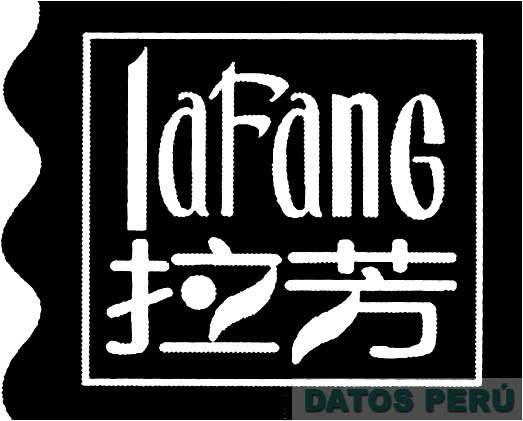La denominación LAFANG escrita en letras características; debajo de ella se aprecian caracteres chinos; todo dentro de una figura cuadrada y sobre una figura irregular; conforme al modelo adjunto