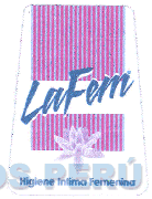 El logotipo conformado por la denominación LAFEM escrita en letras características, sobre un fondo que contiene líneas verticales, y figura estilizada de una flor, todo en los colores azul, fucsia, celeste y lila; conforme al modelo adjunto