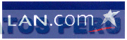 El logotipo conformado por la denominación LAN.COM escrita en letras características de color blanco, acompañada por una estrella gris a la derecha y debajo de la misma una línea oblicua de color rojo, todo dentro de una figura rectangular de fondo azul; conforme al modelo adjunto