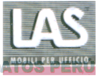 LA ETIQUETA RECTANGULAR DE FONDO COLOR BLANCO Y NEGRO CONTENIENDO LA DENOMINACION "LAS" CON SU ESCRITURA CARACTERISTICA EN COLOR BLANCO, EN FONDO A RAYAS, DEBAJO SE LEEN LAS PALABRAS "MOBILI PER UFFICIO" EN COLOR BLANCO SOBRE FONDO NEGRO Y UNA BANDA COLOR ROJO DEBAJO, CONFORME AL MODELO ADJUNTO,