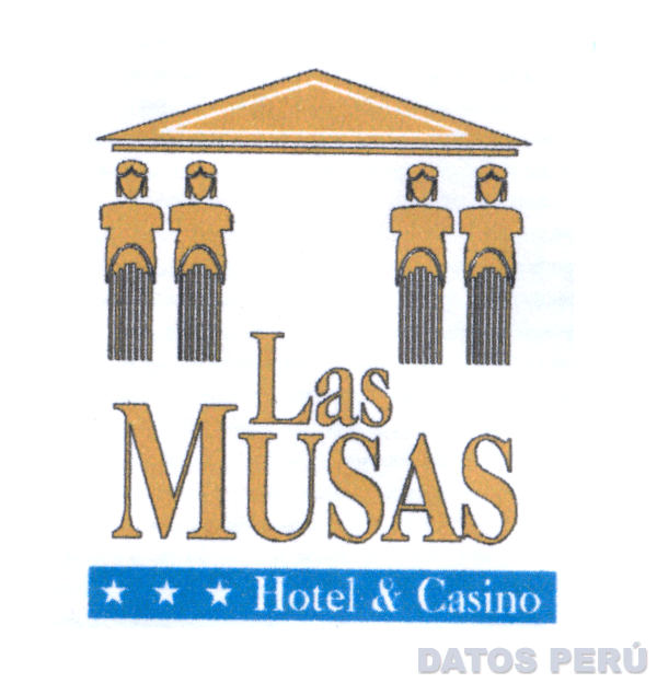 La denominación LAS MUSAS HOTEL & CASINO y el logotipo constituido por dos musas a cada lado en forma de columnas que sostienen un capitel y un alero en forma triangular que en conjunto forman un arco; en los colores dorado, negro, azul acero y blanco, conforme al modelo adjunto
