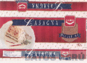 El diseño de envase de LASAGNA LUCHETTI conformado por franjas horizontales de color rojo superpuestas por franjas horizontales mas delgadas de color azul, en cuya parte izquierda aparece un plato conteniendo una lasagna y en cuya parte derecha aparece el logotipo de LUCHETTI, todo en los colores rojo, azul, blanco