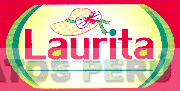 El logotipo rectangular que contiene la denominación LAURITA escrita en letras características y subrayada, la representación estilizada de un sombrero con un lazo y tres rosas, todo dentro de una figura irregular, en la combinación de colores rojo, verde y amarillo en distintas tonalidades, beige, morado y gris; conforme al modelo adjunto