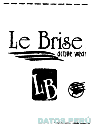 El logotipo conformado por la denominación LE BRISE ACTIVE WEAR escrita en letras características, seguida de tres líneas horizontales paralelas, en la parte inferior las letras LB dentro de un cuadrado; conforme al modelo adjunto