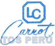 El logotipo conformado por la denominación CARNOT escrita en letras características y en la parte superior se aprecia una figura octogonal que contiene las letras L y C; todo en color celeste; conforme al modelo adjunto