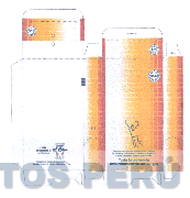 El empaque que presenta diversas figuras geométricas sobre un fondo en degradé que va desde el rojo al blanco, y la denominación LCG LINEA COMERCIAL G dentro de dos círculos concéntricos, y en la parte inferior la figura caracterizada de una persona con las piernas dobladas y los brazos hacia arriba y con un círculo en el codo, cuello, cintura y rodilla; todo en los colores azul, anaranjado, rojo y blanco; conforme al modelo adjunto