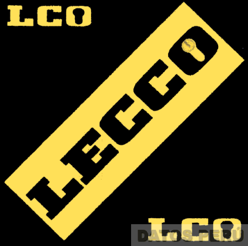 La denominación LECCO escrita en letras características, dentro de una figura rectangular; en la parte superior e inferior las letras estilizadas LCO, todo en los colores amarillo y negro; conforme al modelo adjunto