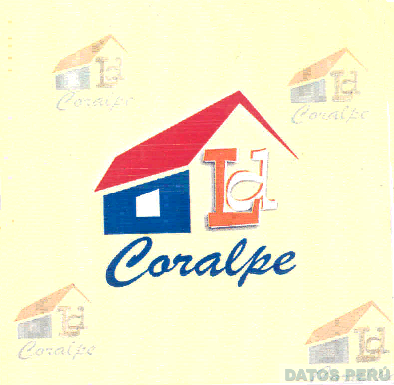 El logotipo conformado por la denominación CORALPE escrita en letras características, en la parte superior se aprecia la representación estilizada de una casa conteniendo las letras L D escritas en forma características, lo cual aparece repetido en las cuatro esquinas, todo dentro de una figura cuadrangular y en la combinación de colores rojo, blanco, azul, anaranjado, marrón, gris, amarillo; conforme al modelo adjunto