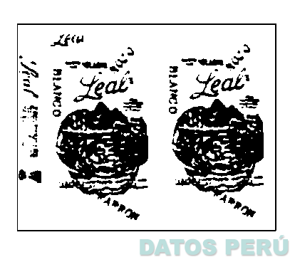 La envoltura que contiene la denominación LEAL y la figura de un postre en la combinación de los colores blanco, rojo, marrón, amarillo y rosado, según modelo adjunto