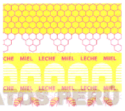 La envoltura conformada por la denominación LECHE MIEL escrita en letras características (sin reivindicar), las figuras hexagonales asemejando un panel de abejas, la representación de varias colmenas y abejas, todo en la combinación de colores amarillo, blanco y rojo; conforme al modelo adjunto